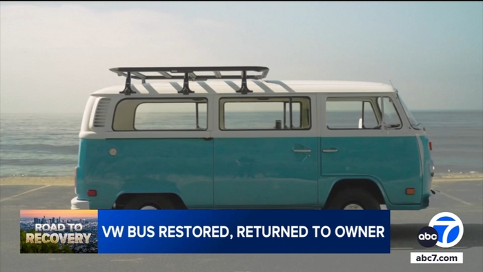 The beloved teal blue, 1977 Volkswagen Bus that was damaged in the Palisades Fire has been fully restored and reunited with its owner.