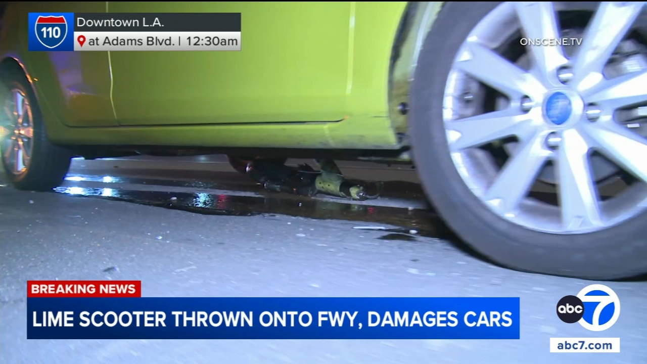 Cars damaged after scooter thrown onto 110 Fwy in DTLA